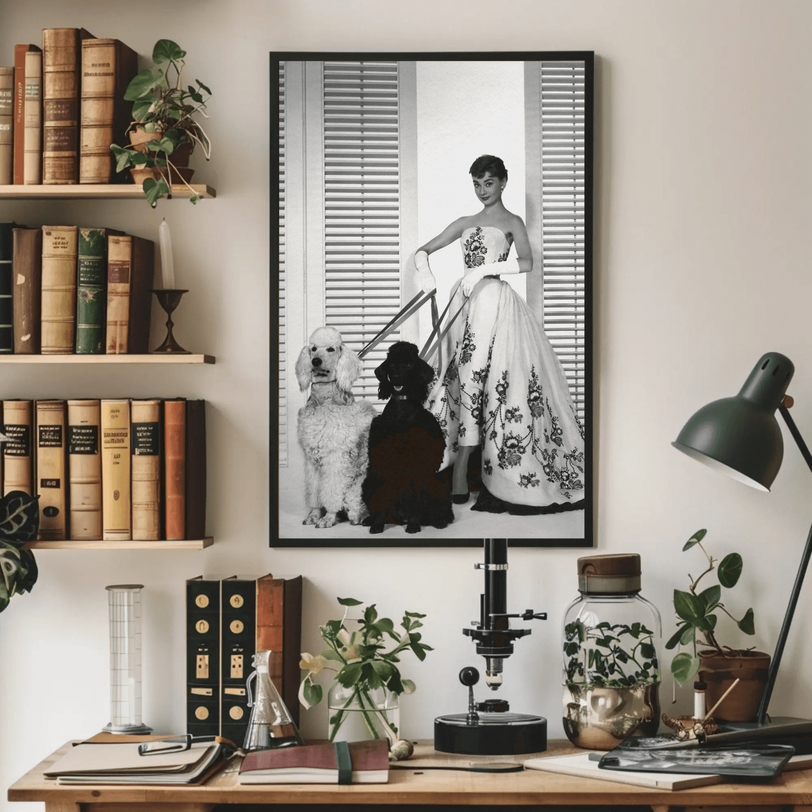 A refined black and white portrait of Audrey Hepburn from Sabrina, capturing her radiant elegance and understated charm. With its graceful composition and vintage allure, this artwork celebrates one of cinema’s most beloved icons. Perfect for lovers of classic Hollywood, timeless fashion, and sophisticated interior design.