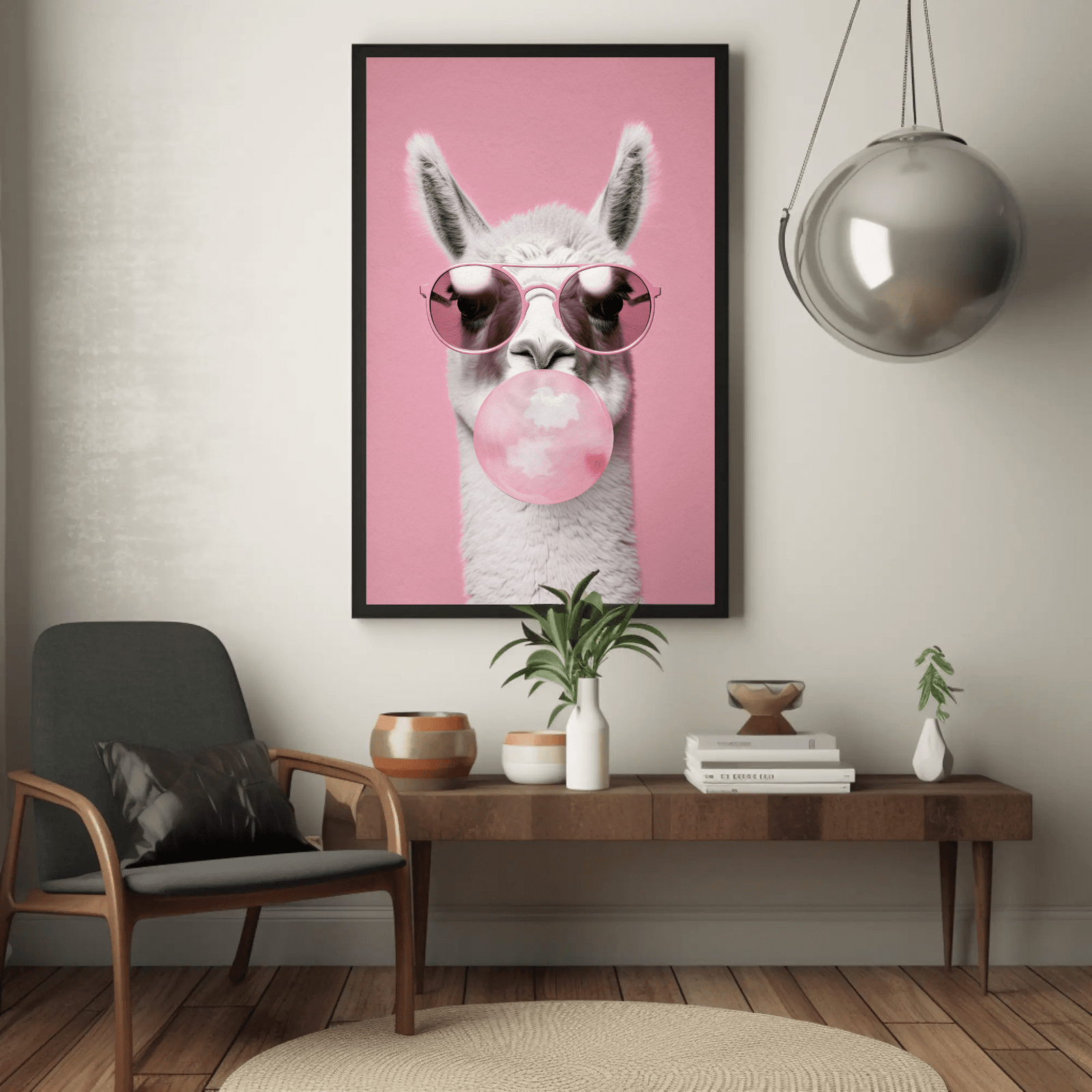 Llama with Bubble Gum Poster Wall Art Poster Print
