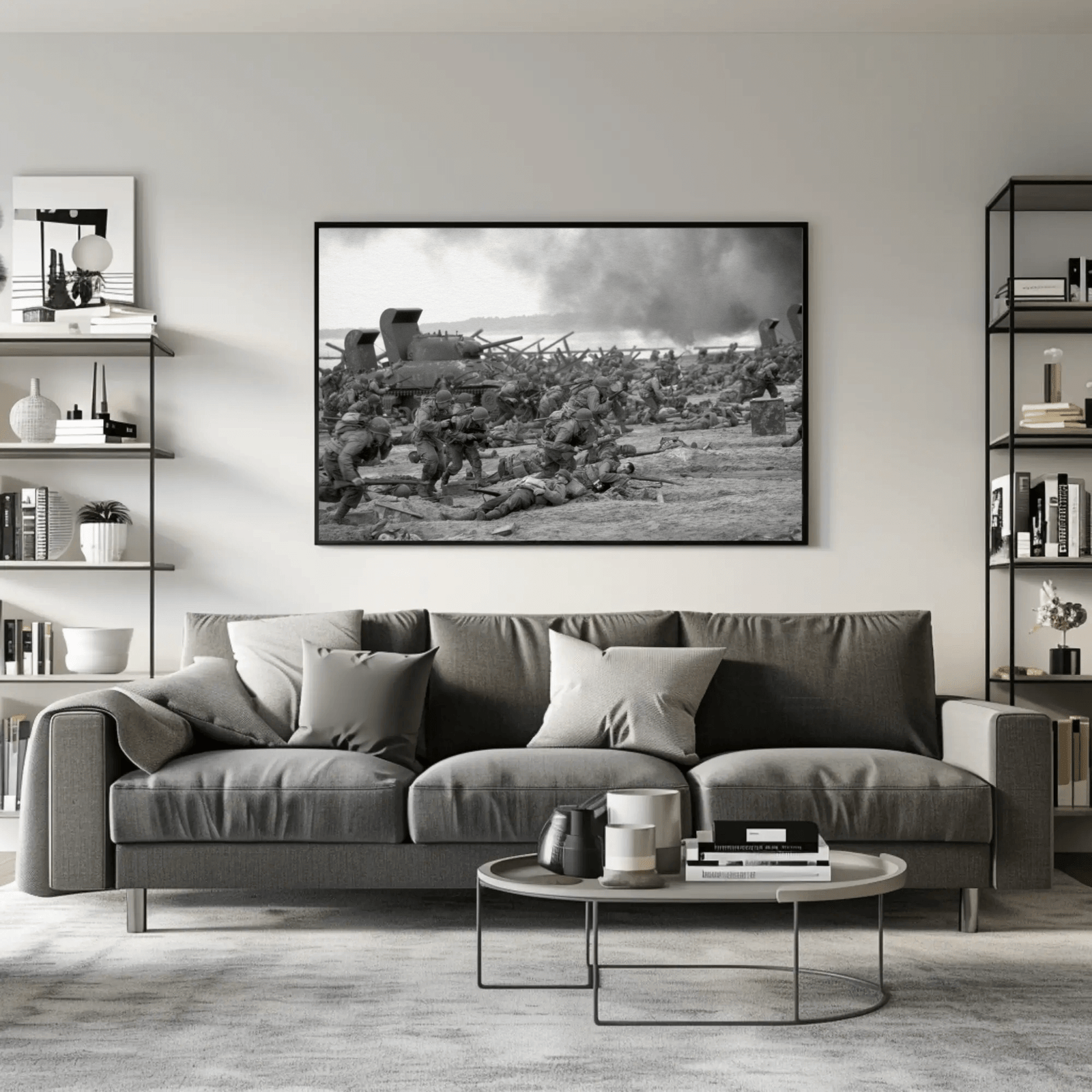 One of cinema’s most iconic war epics. Saving Private Ryan captures the raw emotion, courage, and brotherhood of soldiers in the chaos of World War II. The image evoke both strength and sacrifice, a timeless statement piece for film enthusiasts and lovers of classic storytelling.