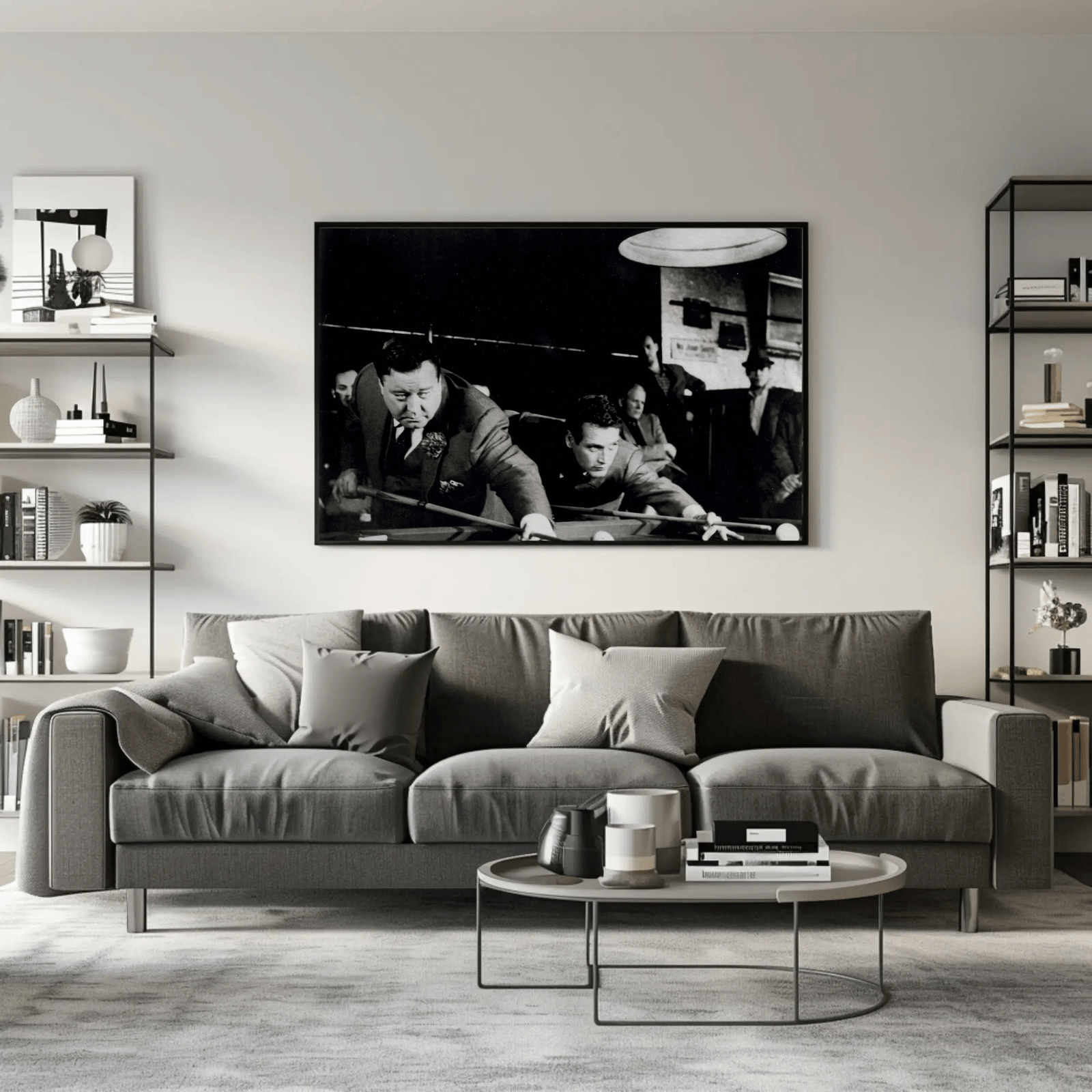 The Hustler (1961), this poster captures the film’s moody tension and sharp elegance. With clean lines, subtle contrast, and a focus on compositional balance, it reflects the precision and cool confidence of Paul Newman’s iconic performance. Perfect for lovers of classic cinema, vintage drama, and sleek, understated design.