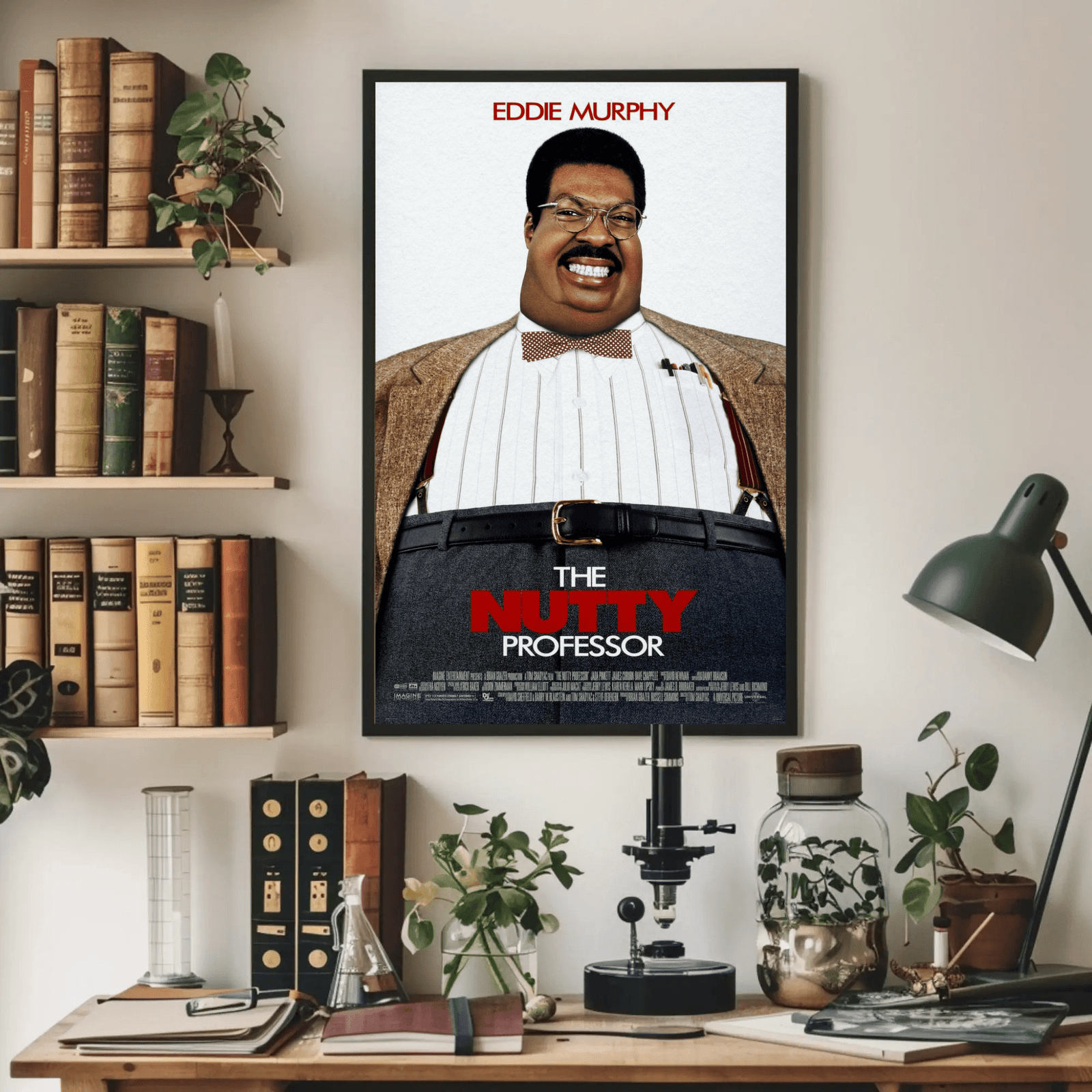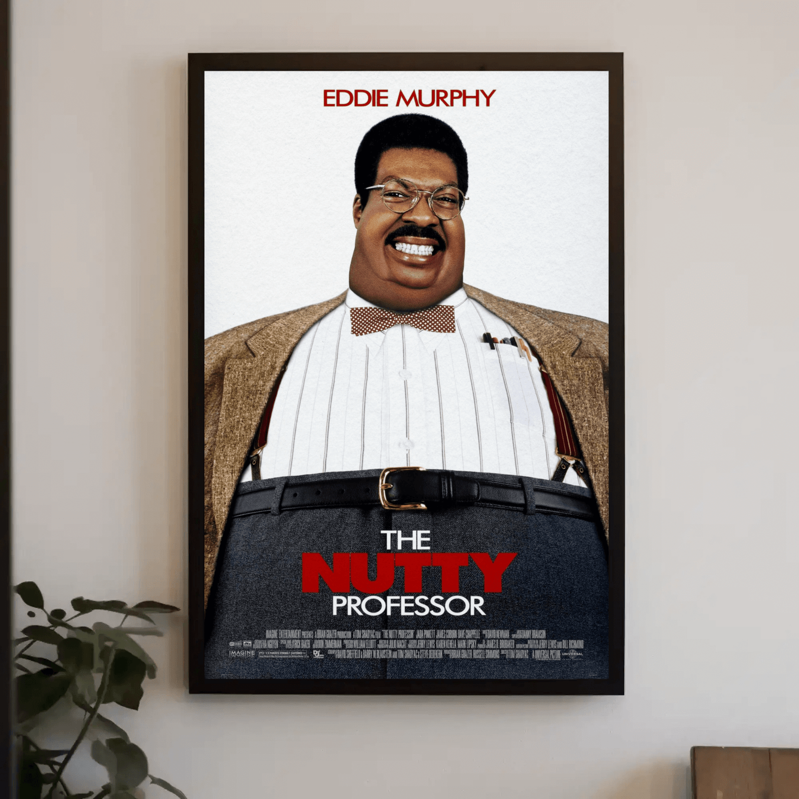 A fun and iconic movie poster for the 1996 comedy hit The Nutty Professor starring Eddie Murphy in his unforgettable Professor Sherman Klump role. With clean composition, bold typography, and instantly recognizable character design, the artwork captures the film’s humor and heart. This classic poster celebrates 90s comedy cinema at its best. Perfect for entertainment rooms, home theaters, or anyone who loves timeless comedies and Eddie Murphy classics.